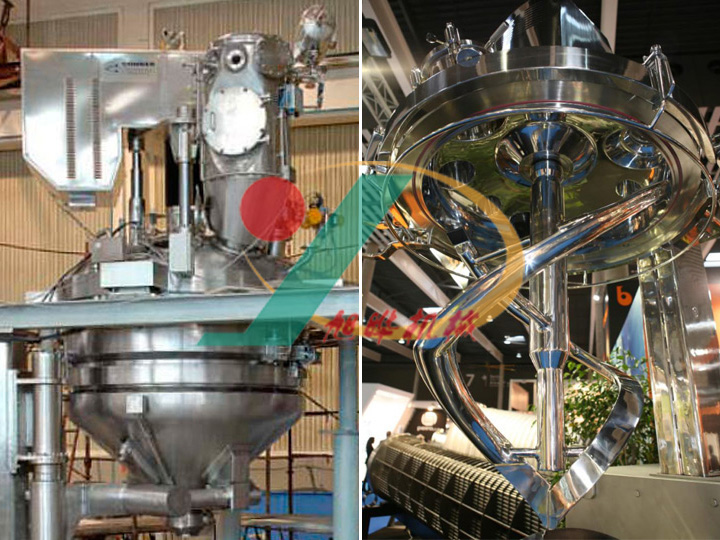 4、真空干燥出料:物料過濾濾干后,在干燥間段筒體夾套及空心軸和螺帶同時對物料進(jìn)行加熱,并在頂部抽真空對物料進(jìn)行真空低溫密閉干燥,干燥后自動密閉出料。